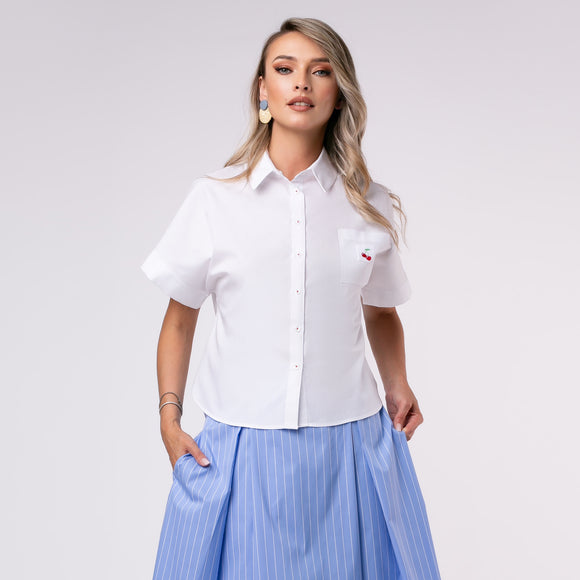 Rochie fetiță din bumbac vintage cu broderie cireșe