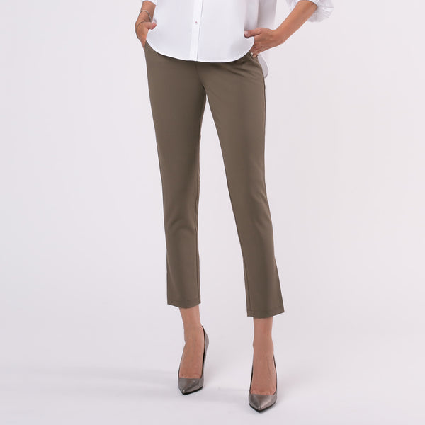 Pantaloni din stofa kaki cambrati cu buzunare, croiala slimfit.