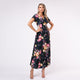 Rochie lungă neagră cu imprimeu floral – elegantă, lejeră, feminină